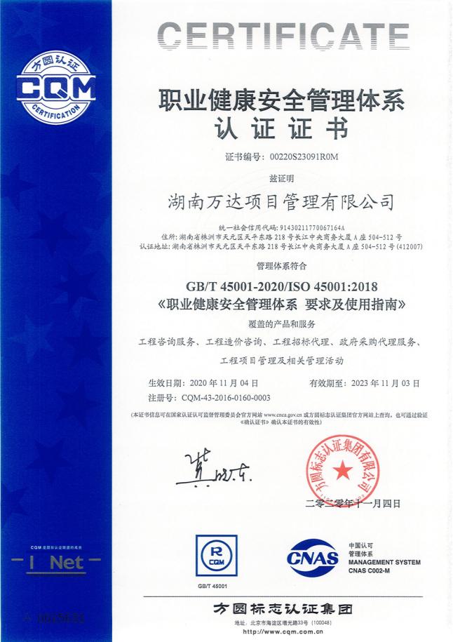 职业健康安全管理体系认证