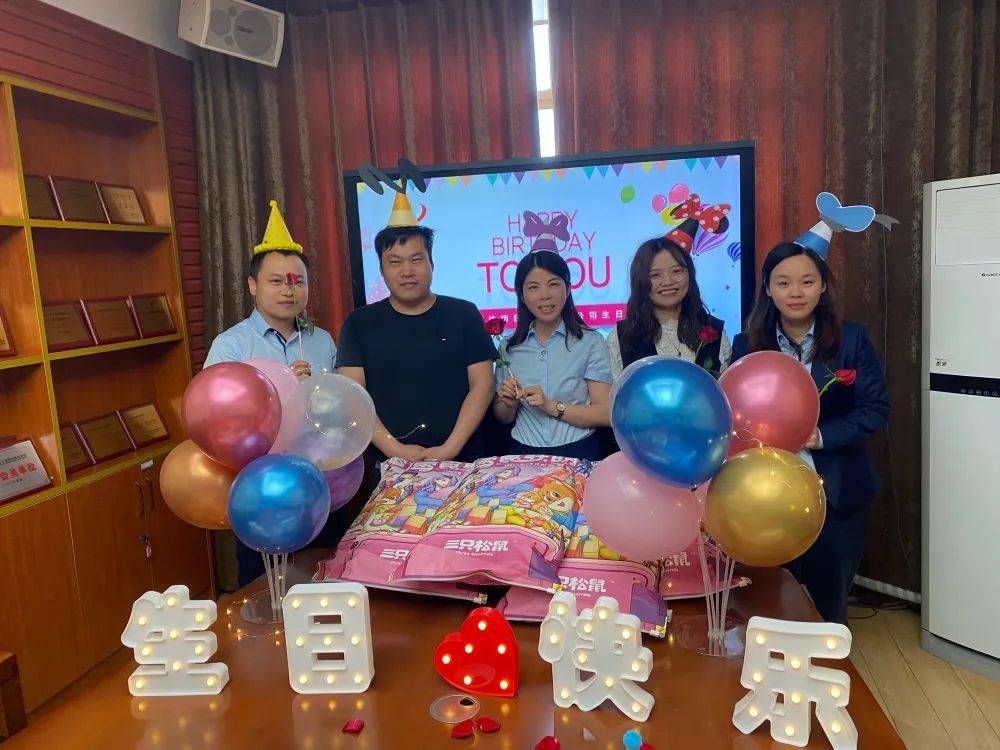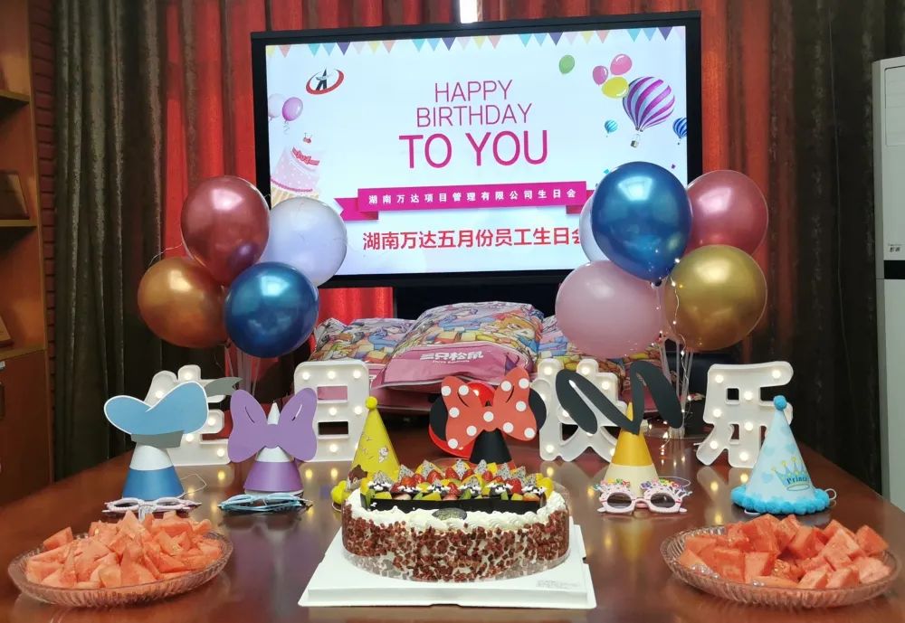 生日会现场,五彩的气球,鲜美的水果,甜美的蛋糕,惊喜的礼物。每一个细节,都渗透着公司对寿星们的浓浓关怀。