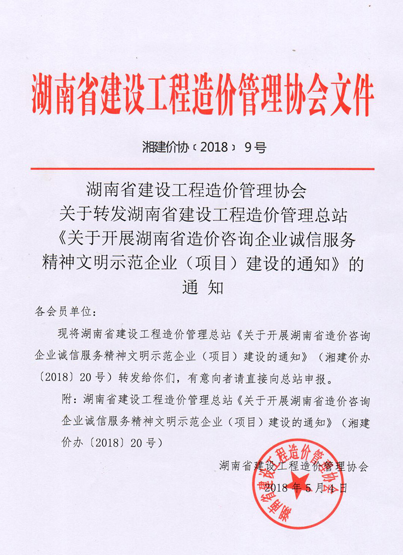 根据湘建价协【2018】20号文精神,将在全省范围内创建造价咨询行业诚信服务精神文明示范企业(项目)。昨日下午,我司董事长颜佳鸿召集相关部门召开了专题工作会议,他在会议上指出:我司应当迅速报名、积极组织,为将我司创建为造价咨询行业诚信服务精神文明示范企业而努力。自我司成立以来,一直秉承“诚信经营”理念,咨询技术以及道德口碑向来在主管部门、同行当中处于较高水平,故这次诚信服务创建工作,我司一定要竭尽全力争取,号召全司动员为建设精神文明示范企业而加油!