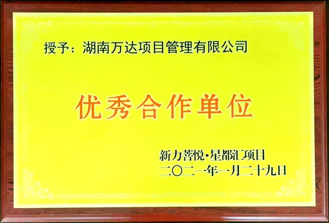 因我司长沙事业部在柏屹创新园项目和新力菩悦·星都汇项目中展现出的专业化、精细化的工作作风,受到了来自业主单位的高度肯定和赞扬,并分别向我司颁发了“最佳项目管理合作单位”和“优秀合作单位”荣誉牌匾。